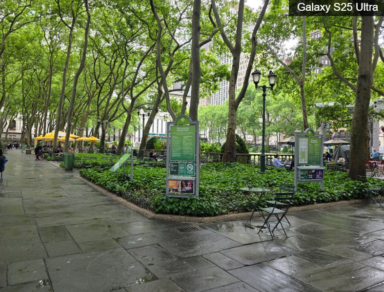 Судя по всему, у их основных камер нет существенных различий, поскольку на этих снимках из Брайант-парка, сделанных под деревьями, экспозиция одинаковая. Мне нравится, что они делают акцент на деревьях, поэтому затенённые участки немного светлее.