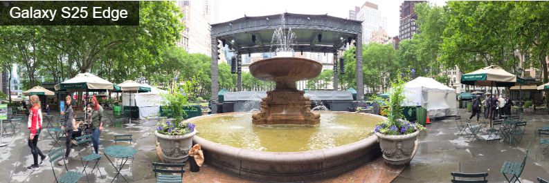Если использовать основные камеры для съёмки панорам (а не сверхширокоугольные), то результат будет таким же, как у S25 Edge и S25 Ultra.
