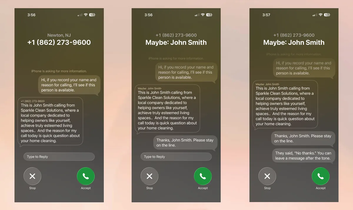 Тем не менее я ответил, что мне нужно больше информации, но Call Screen предложил им оставить сообщение. Вот, собственно, и всё взаимодействие с iOS 26.