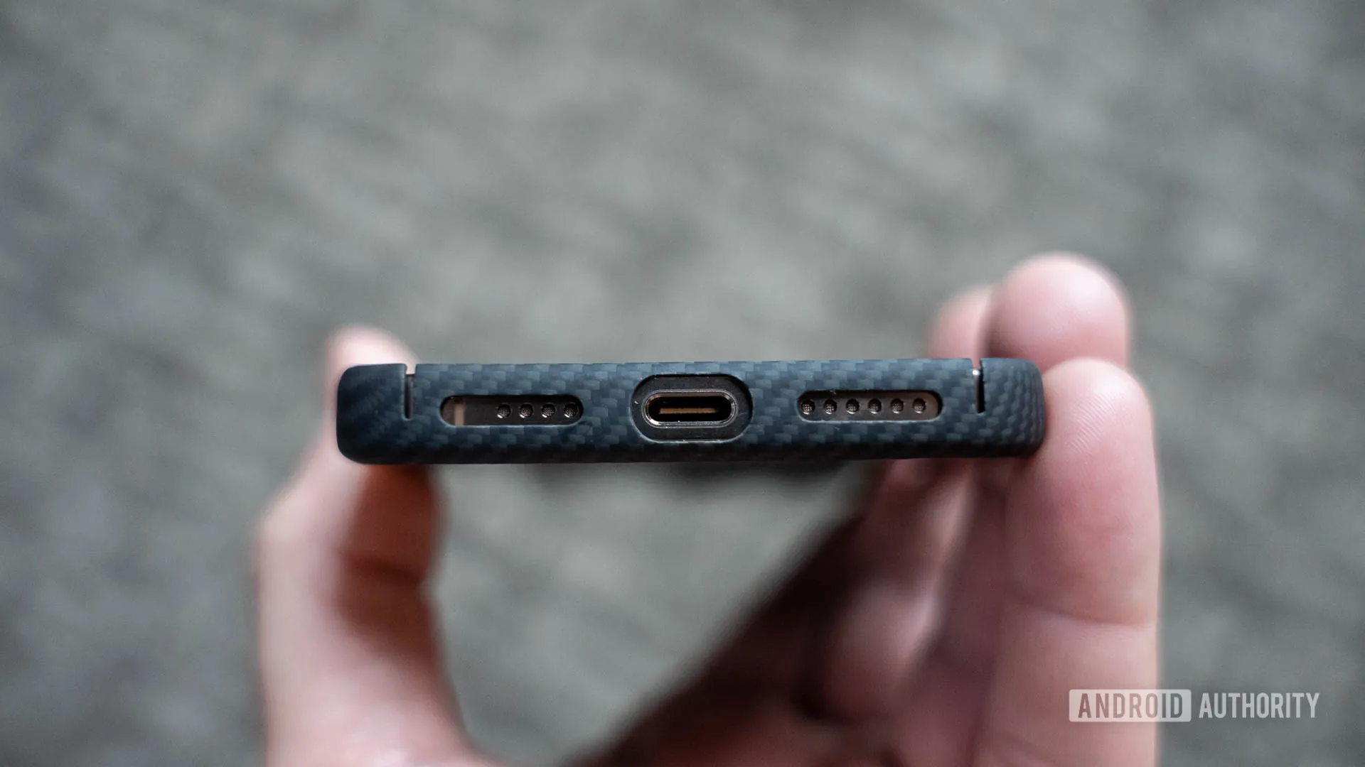Так что же мы узнали из этого чехла? Ну, первое и самое очевидное — чехол для iPhone 17 Pro Max очень хорошо садится на iPhone 16 Pro Max. Все кнопки имеют достаточный зазор, решетки динамиков имеют все необходимое пространство, и ничто не мешает порту USB-C. Даже линзы задней камеры находятся точно на том же месте, и чехол облегает их как влитой. Это говорит о том, что общие размеры и расположение кнопок у iPhone 17 Pro Max должны быть схожими (или даже идентичными) с iPhone 16 Pro Max.