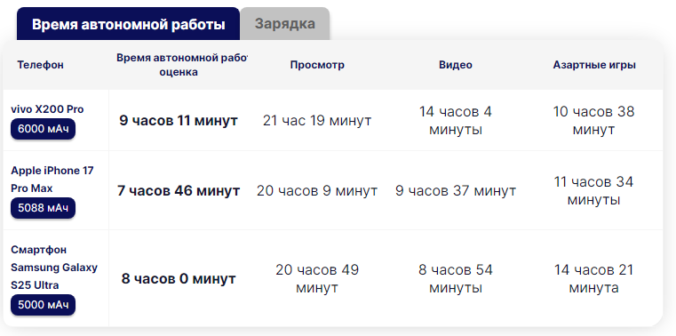 Хотя Vivo в основном известна своим превосходным качеством камер, время автономной работы этого телефона поражает. Долгое время он занимал первое место в нашем рейтинге телефонов с самым длительным временем автономной работы, и это заслуженно, ведь в нём установлен массивный кремний-углеродный аккумулятор ёмкостью 6000 мАч.