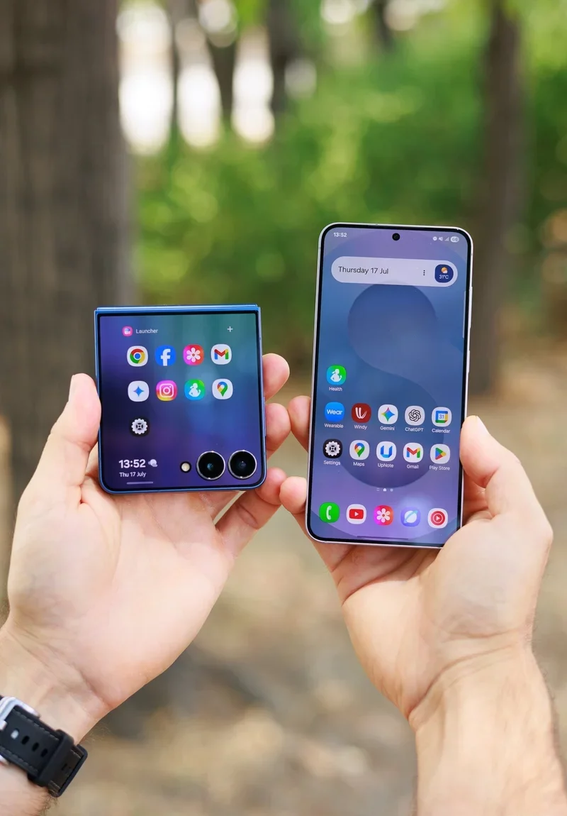 Давайте посмотрим на Samsung Galaxy S25 и Galaxy Z Flip 7. В серии S25 корейцы сделали базовую модель еще меньше, чем раньше. А Z Flip 7 сейчас считается одной из лучших «раскладушек» на рынке. Но вот в чем дело. У них совершенно разные форм-факторы. Сказать однозначно, кто из них «меньше», довольно сложно. Оба они вроде бы компактные, но достигают этого по-разному.