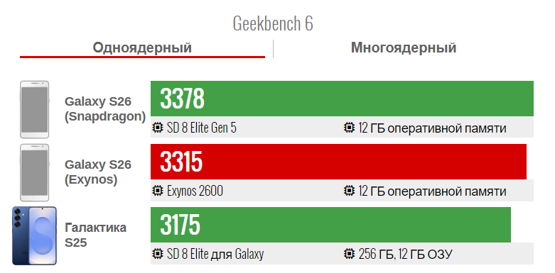Мы до сих пор точно не знаем, в каких регионах будут продаваться модели Galaxy S26 на базе процессора Exynos. Мы слышали о Корее и Европе, но пока не видели, чтобы европейская версия S26 проходила тесты в Geekbench.