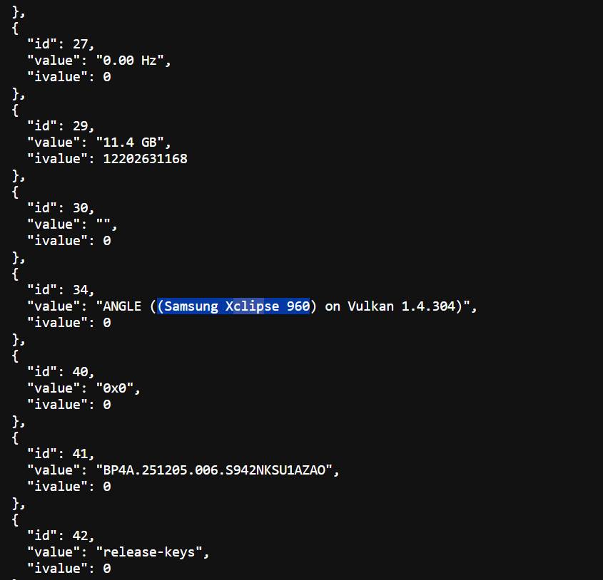 Хотя это и не было частью теста, Geekbench сообщает о графическом процессоре Samsung Xclipse 960. Компания Samsung заявила, что его вычислительная мощность в два раза выше, а производительность при трассировке лучей на 50% выше, чем у графического процессора Exynos 2500, но не предоставила подробной информации об архитектуре. По неофициальным данным, графический процессор основан на архитектуре RDNA 4 (по сравнению с RDNA 2 в предыдущих поколениях).