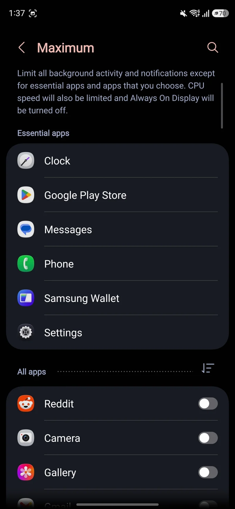 Но существует и более суровый режим максимальной экономии. Он жестко убивает любую фоновую активность и уведомления. Вы будете получать оповещения только от самых важных программ, которые сами добавите в белый список. Этот пресет также режет скорость процессора и гасит экран блокировки.