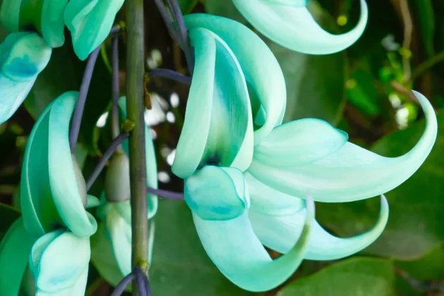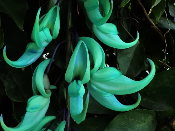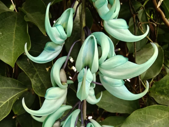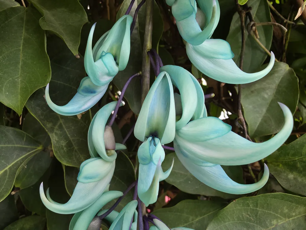 Это была просто проверка цвета, чтобы понять, какой телефон с камерой может правильно передать удивительный оттенок цветущей нефритовой лианы. Цветки мерцающие, почти металлические, сине-зелёные, которые проверят границы того, что вы считаете синим или зелёным (и вы можете проверить, мой ли это синий цвет, если хотите увидеть границы сине-зелёного).