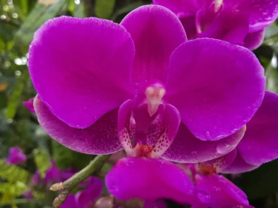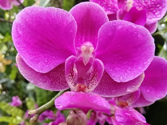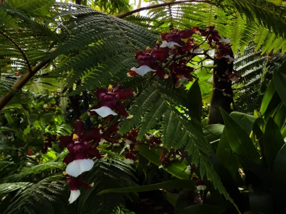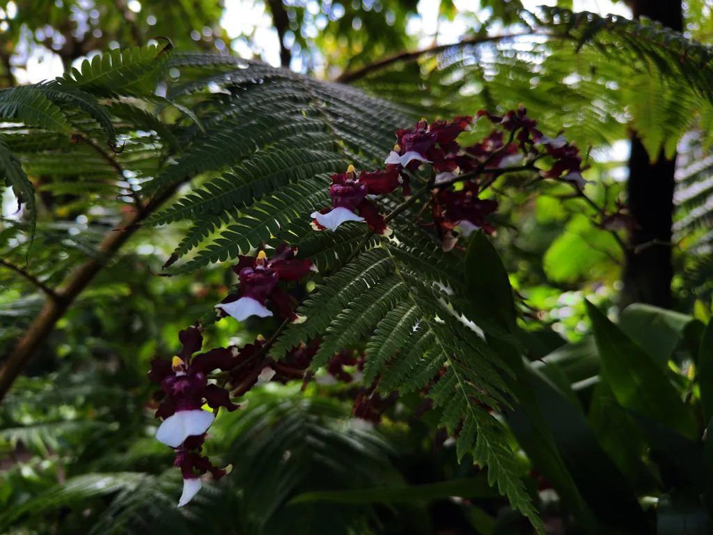 Камера Galaxy S25 Ultra точнее передаёт цвет, хотя изображение выглядит недоэкспонированным, учитывая обилие естественного света в Ботаническом саду. На мой вкус, фокусное расстояние немного узкое, и было трудно сфокусироваться на всех орхидеях-бабочках.