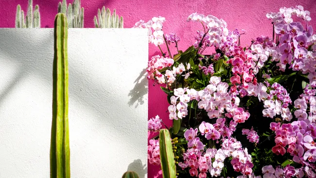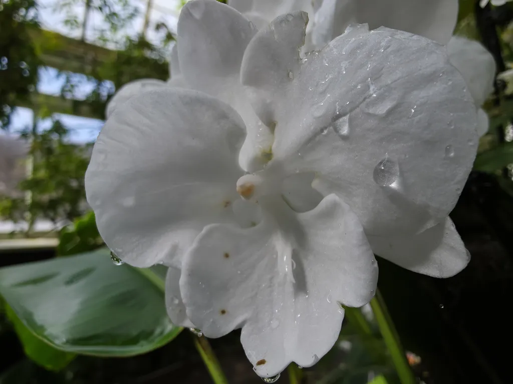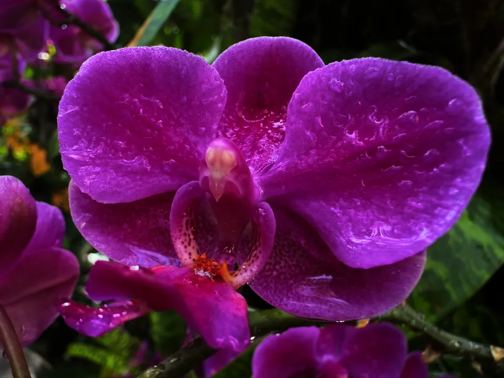 У iPhone 16 Pro сразу возникли проблемы с этим снимком. Когда я использовал основной режим съёмки, приложение камеры не могло сфокусироваться только на орхидее-бабочке. Я разрешил iPhone включить макросъёмку, которая уменьшила разрешение, и получил этот ужасный снимок со слишком тёплыми цветами и, казалось бы, узкой диафрагмой, из-за которой в фокусе оказались почти все цветы, а не несколько.