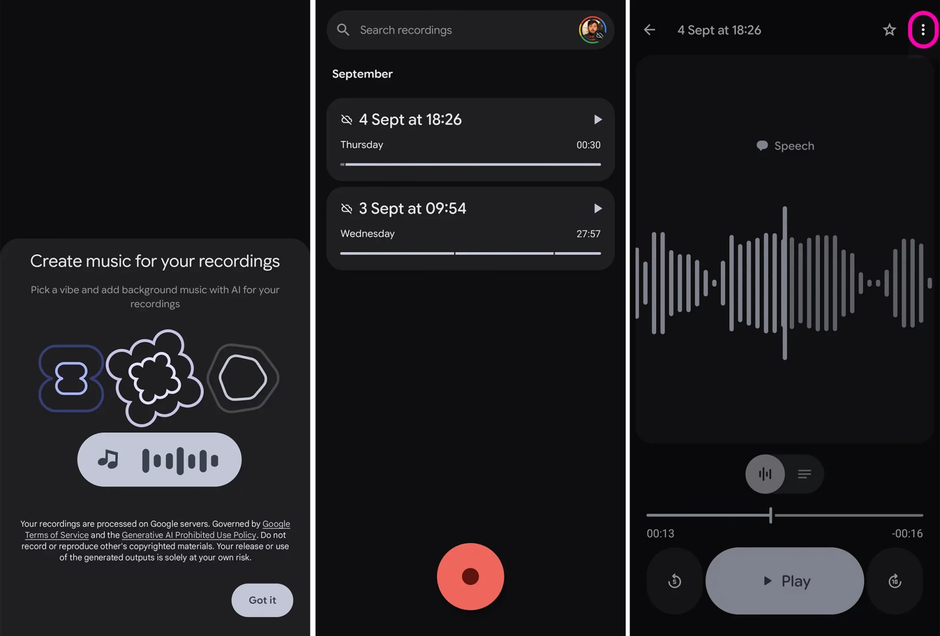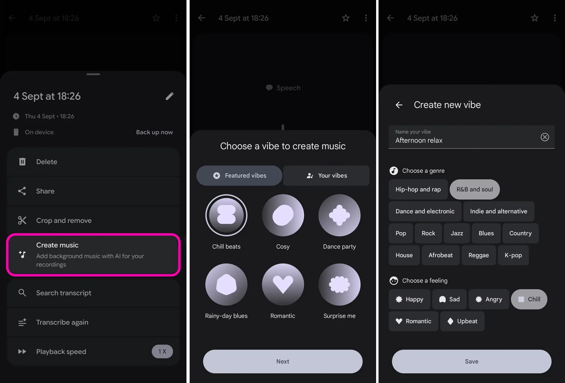 Стандартное приложение «Диктофон» (Recorder) от Google — это мощный инструмент с функциями вроде транскрипции в реальном времени. На Pixel 10 оно получило новый трюк: возможность добавлять музыку, сгенерированную искусственным интеллектом. Это идеально подходит для набросков песен или просто чтобы придать живости вашим голосовым заметкам.