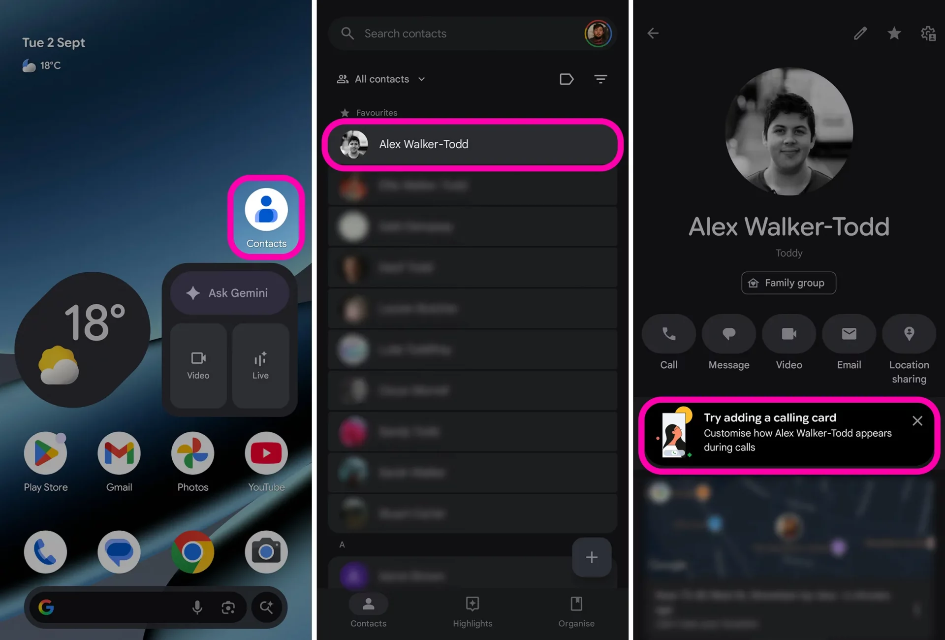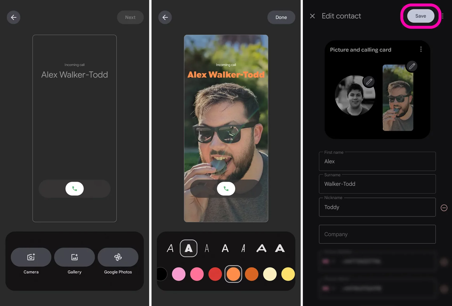 Подобно «Постерам контактов» в iOS, эти карточки представляют собой персонализированные полноэкранные заставки для ключевых контактов в вашей телефонной книге. Вы можете выбирать для них определенные фотографии, а также настраивать стили и цвета шрифтов.
