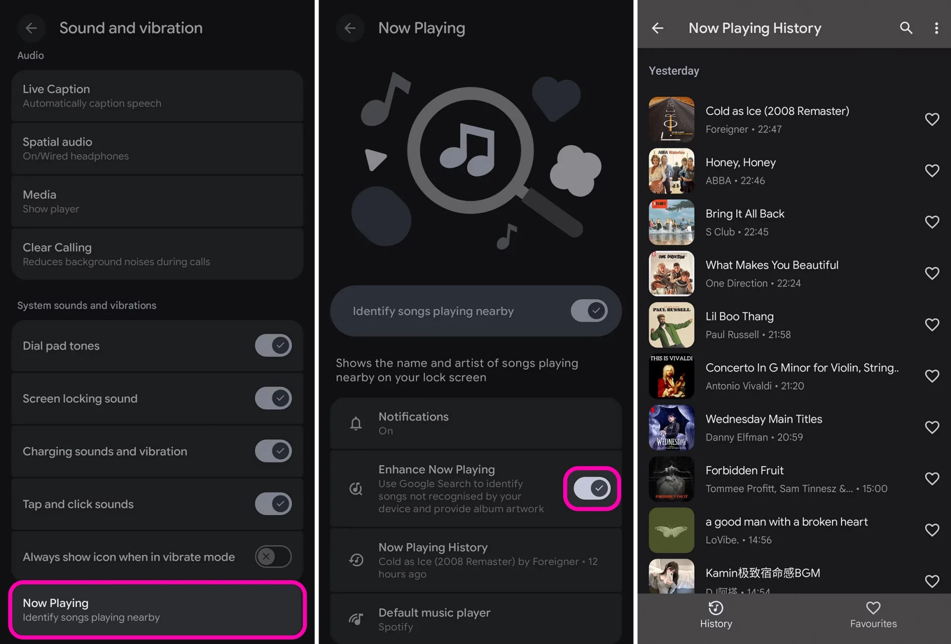 Но с выходом Pixel 10 появилась улучшенная версия — Enhanced Now Playing, которая по умолчанию выключена. Google добавила возможность автоматически подгружать обложки альбомов для распознанных треков. Это мелочь, но с ней гораздо проще потом найти ту самую песню в стриминговом сервисе или узнать исполнителя в лицо.