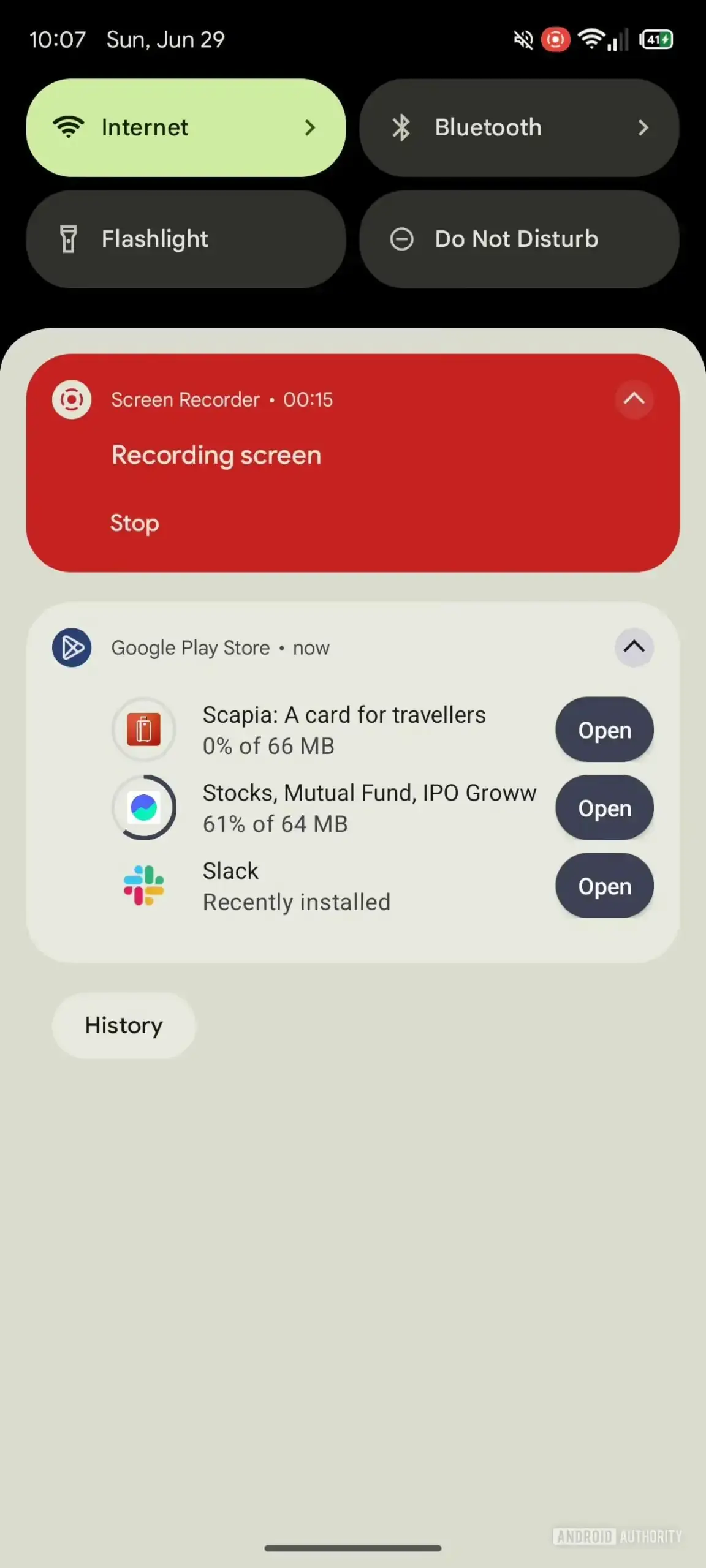 Одной из основных проблем в более ранних версиях, в которых тестировалась эта функция, было непонятное отображение «0% от 0 МБ» даже после завершения загрузки приложений. Теперь это заменено на надпись «Недавно установлено» под названием приложения, что делает ситуацию более понятной для пользователей. Вы также можете запускать приложения прямо из уведомления с помощью кнопки «Открыть», которая теперь работает должным образом. После открытия приложения оно исчезает из списка.