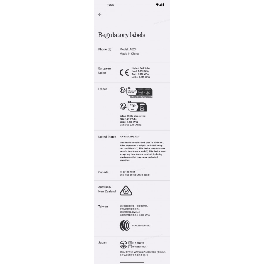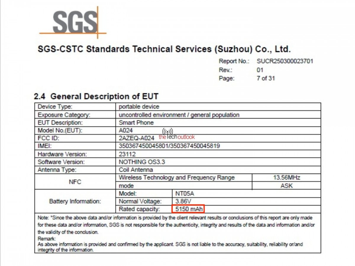 Phone (3) будет оснащен аккумулятором емкостью 5150 мАч (NT05A) с проводной зарядкой мощностью 65 Вт. Также подтверждено, что на устройстве не будет загружаться Nothing OS 3.3 на базе Android 15. Что касается возможностей подключения, Phone (3) будет поддерживать трехдиапазонный Wi-Fi 6E, Bluetooth и NFC. В списке также указано, что устройство будет предлагаться в белом и синем цветах.