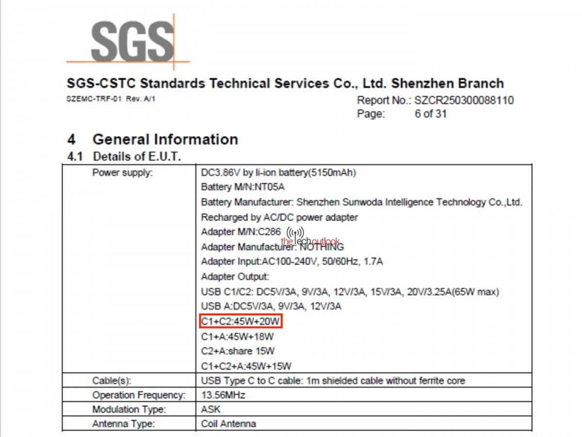 Характеристики аккумулятора, зарядки и подключения Nothing Phone (3) подтверждены в сертификационных листах