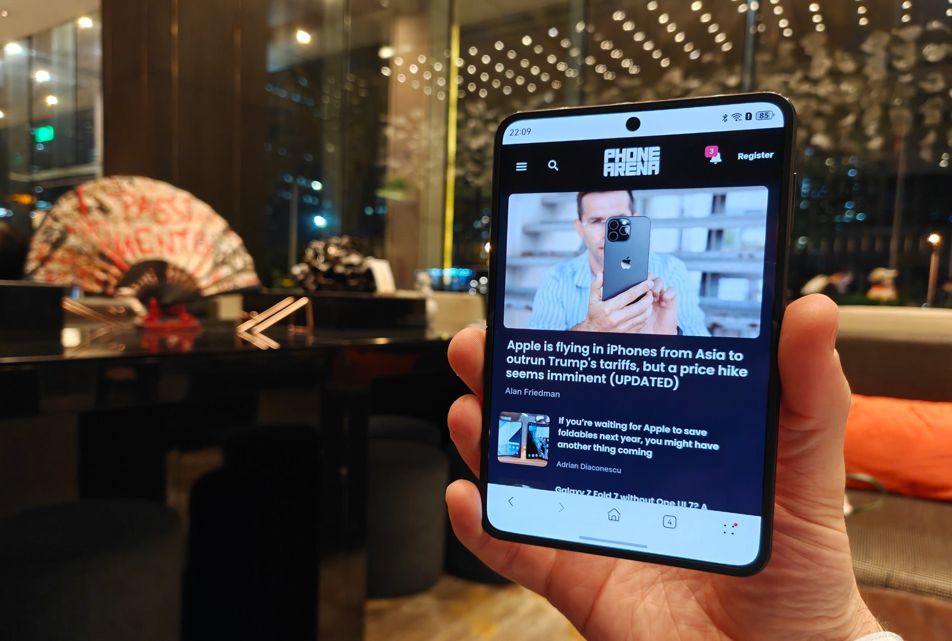 Это связано с уникальным форм-фактором Huawei Pura X и соотношением сторон экрана. Этот телефон такой же компактный, как обычный складной телефон, но его особенность в том, что он открывается горизонтально, а значит, в разложенном виде вы получаете телефон с дисплеем, который не очень высокий, но приятно и неожиданно широкий.