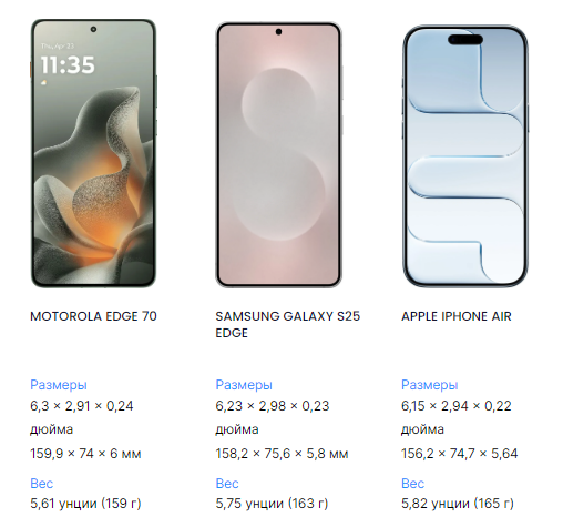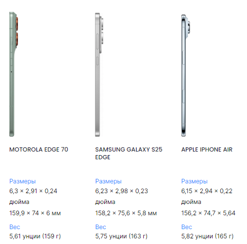 Начнём с очевидного: Motorola Edge 70 отлично лежит в руке, как и S25 Edge и iPhone Air.