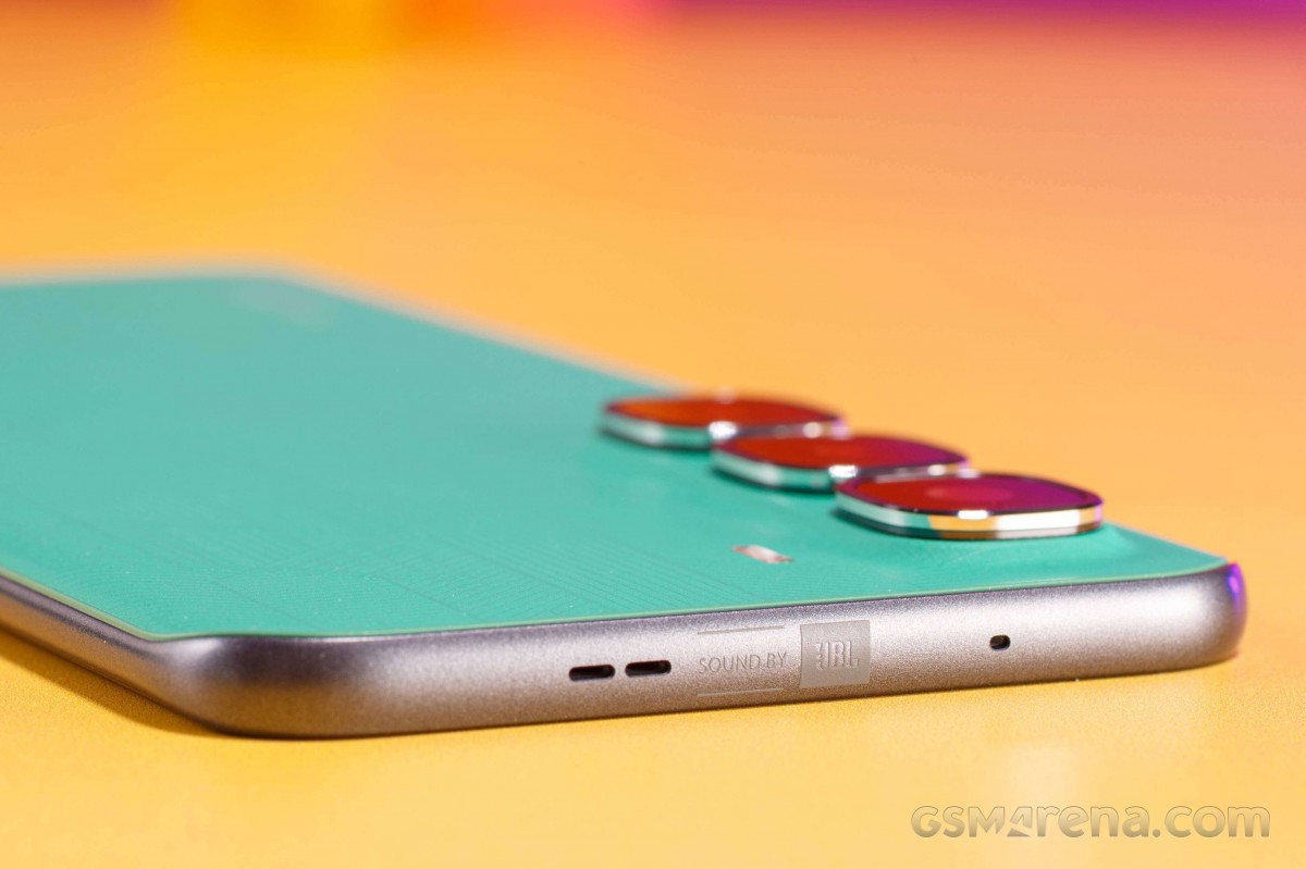 Эта зелёная модель имеет покрытие, которое Infinix называет Scent Weave Leather. Это текстурированная поверхность с шероховатой текстурой, приятная на ощупь.