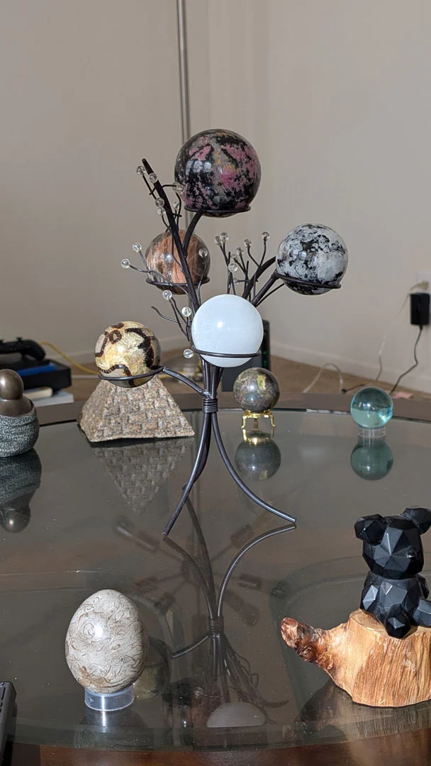 Но на снимке с кучей кристаллов на столе Pixel и Samsung Galaxy S24 Ultra показали одинаковый уровень детализации. Чёрно-розовая сфера в верхней части декора выглядела наиболее чёткой на S24 Ultra, с чётким отражением. Если говорить об отражении, то у Samsung были лучшие отражения из всех, включая мини-пирамиду и чёрный металлический держатель. Если вы посмотрите на объекты на переднем плане, например, яйцо цвета слоновой кости и сандалового дерева, то Pixel явно выигрывает.