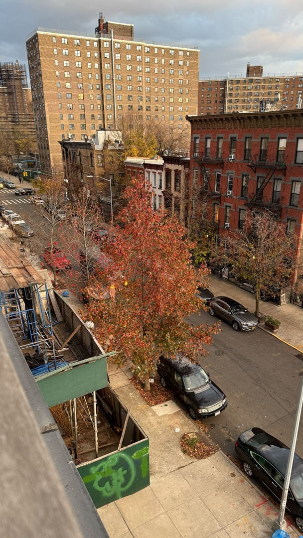 iPhone 16 Pro Max показал наилучший результат при съёмке улицы в районе. На нём лучше всего получились дерево с огненно-красными листьями и здание из красного кирпича. При увеличении масштаба также отчётливо видна строительная площадка по соседству.