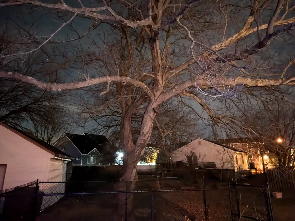Мне нравится, как оба телефона освещают дерево на моём заднем дворе на первом наборе изображений, но более чёткое изображение на iPhone 16e действительно показывает разницу между ними. На большей части дерева и прилегающих к нему ветках изображение более чёткое.