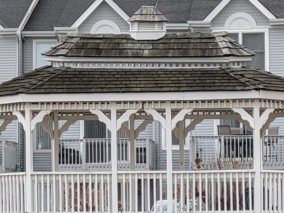 При 2-кратном увеличении результаты по-прежнему в пользу iPhone 16e. Четвёртый набор фотографий с крупным планом беседки показывает чуть более чёткую картинку с деревянной черепицей на крыше. Опять же, разница не существенная, но заметная.