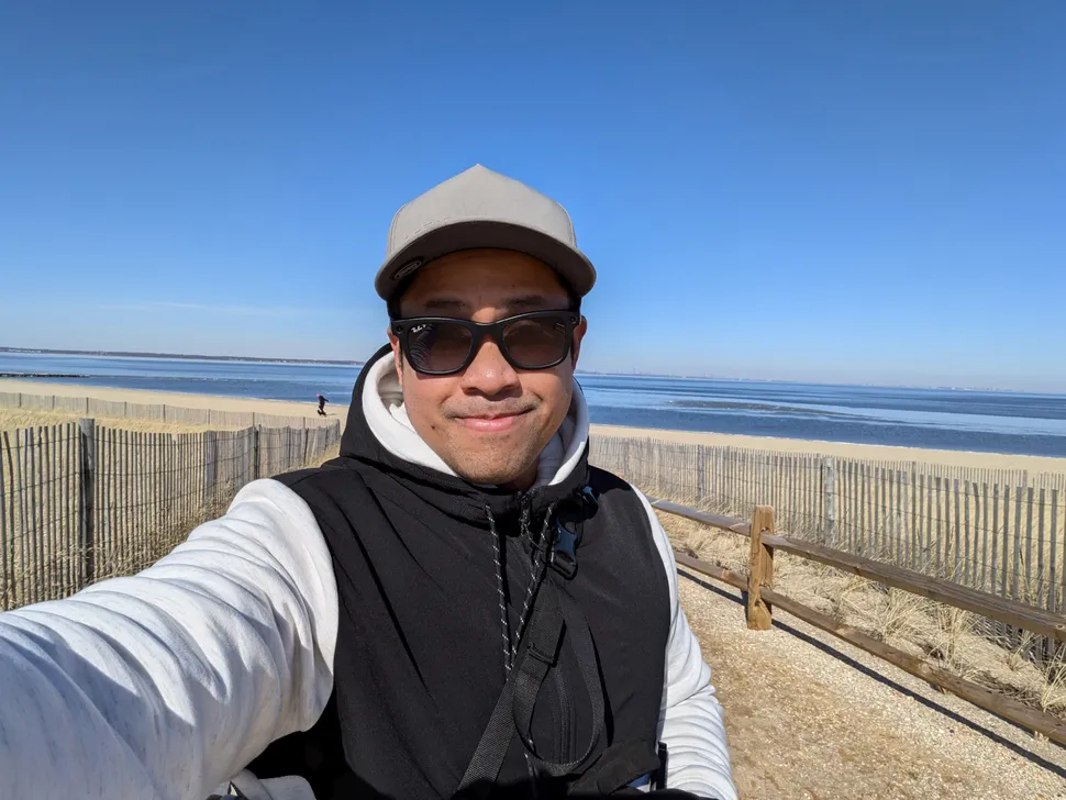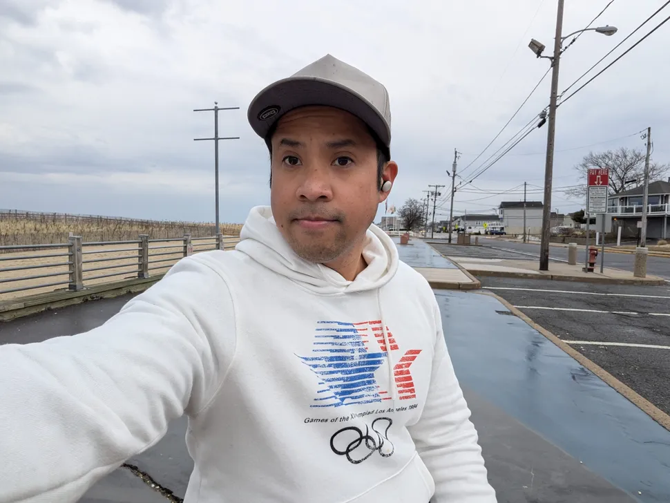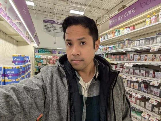 Тем не менее, они по-разному обрабатывают селфи, которые я снимаю. Я бы сказал, что им удаётся передать множество деталей, например, черты моего лица и ткань моей толстовки. Однако Pixel 8a чрезмерно компенсирует тени на изображениях, усиливая их, что также непреднамеренно осветляет мой тон кожи. Это хороший снимок, но мне больше нравятся более реалистичные снимки с iPhone 16e.