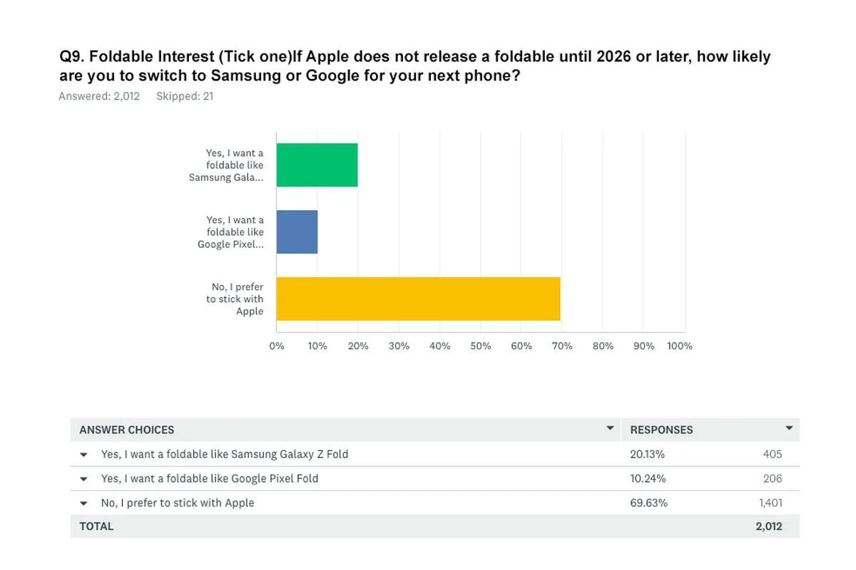 Возможно, не совсем справедливо сравнивать эту микроскопическую цифру с 30,3 процентами респондентов в этом году, которые говорят, что «рассмотрят» Samsung или Google foldable,еслиiPhone Foldне появится «до 2026 или 2027 года» (в этом уравнении много гипотетических предположений), но совершенно очевидно, что у Apple проблема лояльности к бренду становится все серьезнее.