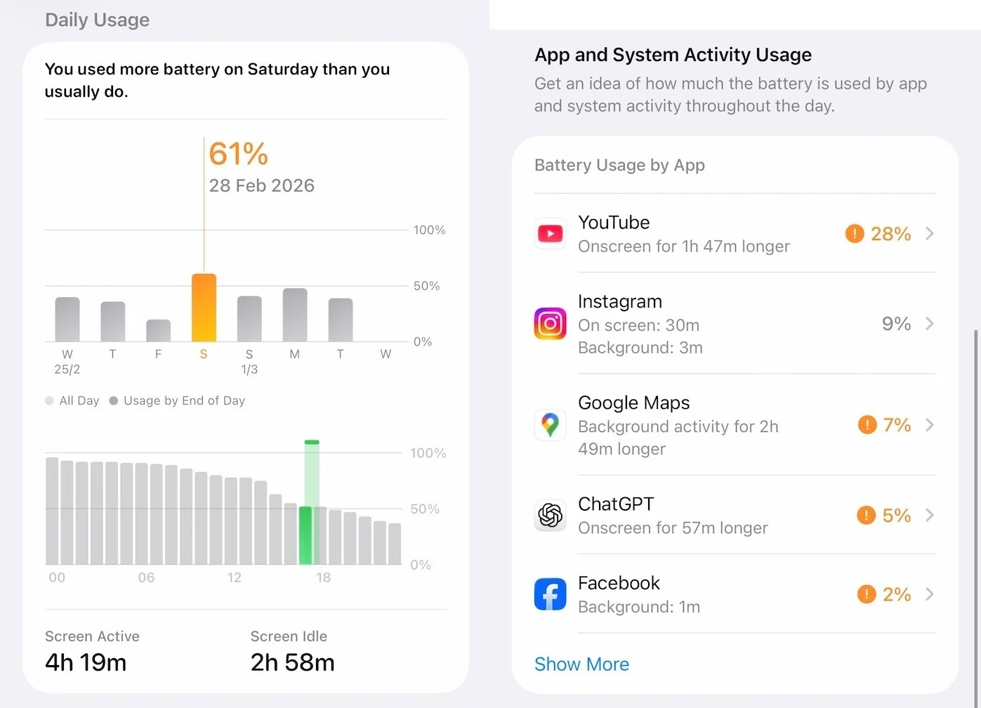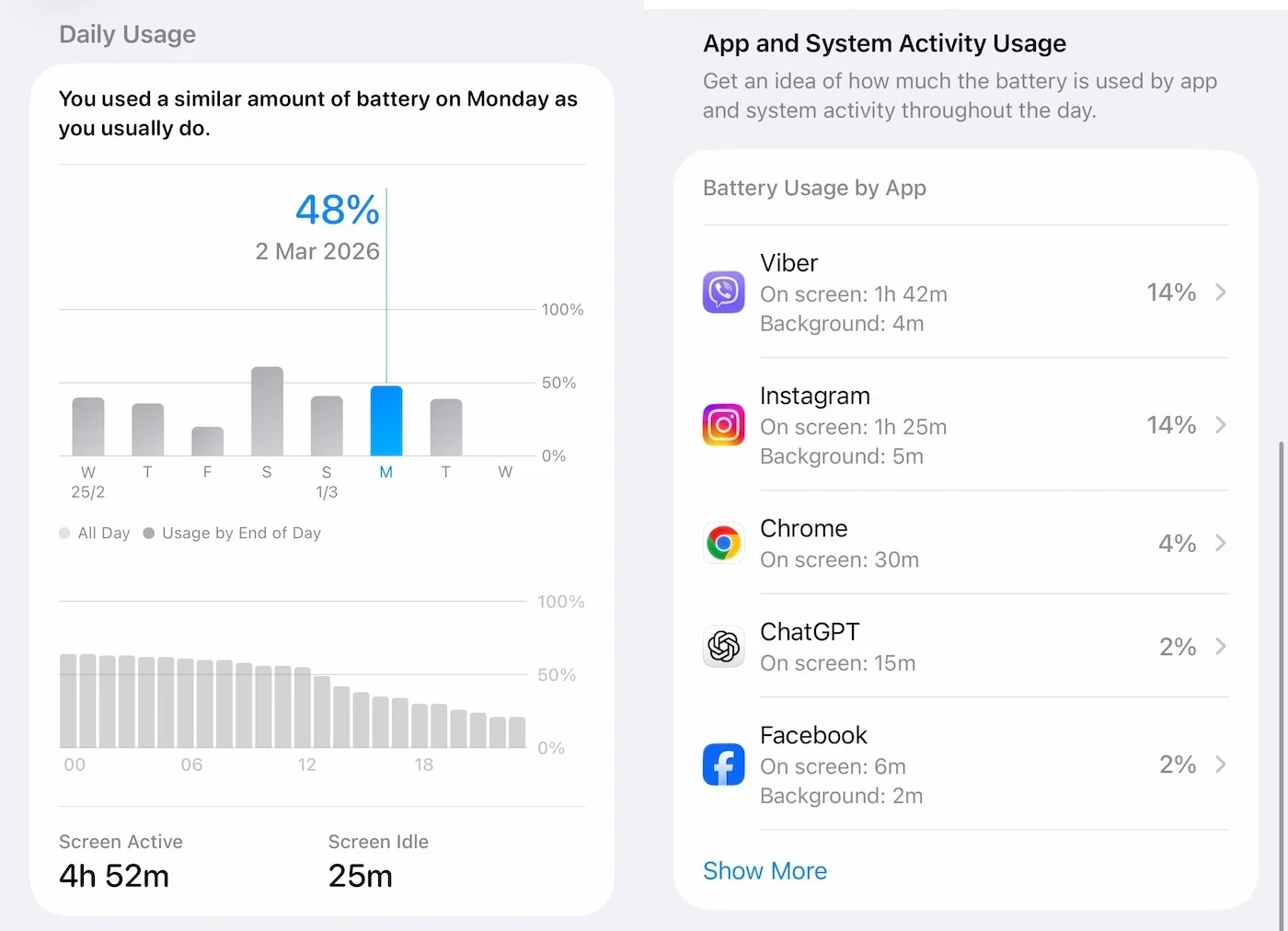 Результаты оказались неожиданными даже для меня. Независимо от того, использовал ли я смартфон умеренно, расходуя всего 20% заряда, или проводил с экраном весь день, показатели энергоэффективности оказались весьма стабильными. И если вас интересовало, способен ли iPhone 17 Pro Max проработать два полных дня без подзарядки, теперь у меня есть ответ.