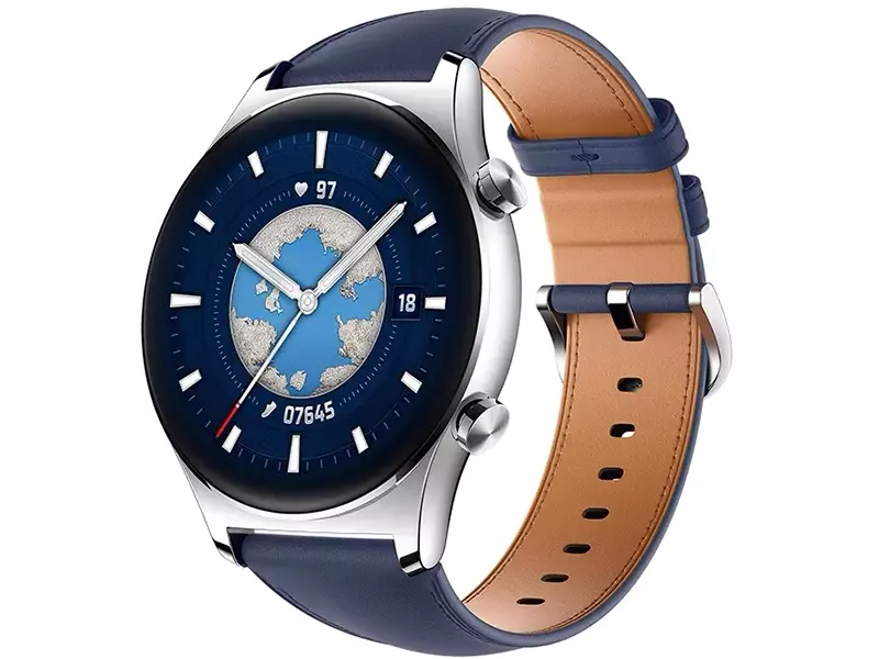 Особенности: корпус из алюминия, программная платформа WearOS, поддержка GPS/ГЛОНАСС, Wi-Fi, Bluetooth 5.2 и NFC, защита от воды, 32 Гбайт памяти, масса спортивных режимов