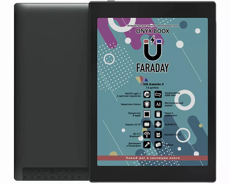 Особенности: 7,8-дюймовый цветной бумагоподобный экран E Ink Kaleido 3, металлический корпус, аккумулятор емкостью 5 000 мАч, микрофон, стереодинамики, ОС Android 11, обложка в комплекте