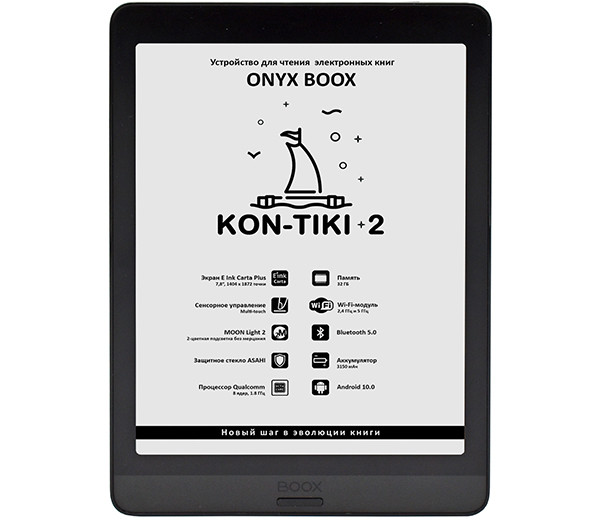 Чем хорош: 7,8-дюймовый сенсорный экран E Ink Carta Plus с регулировкой цветовой температуры подсветки, ОС Android 10, процессор Qualcomm, поддержка Wi-Fi и Bluetooth, порт USB Type-C, динамик для прослушивания музыки и аудиокниг, поддержка массы форматов книг
