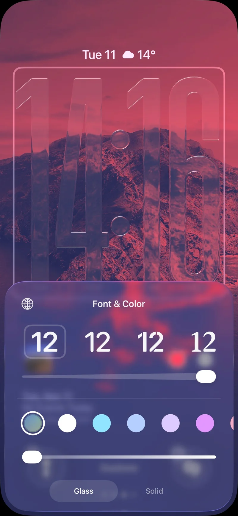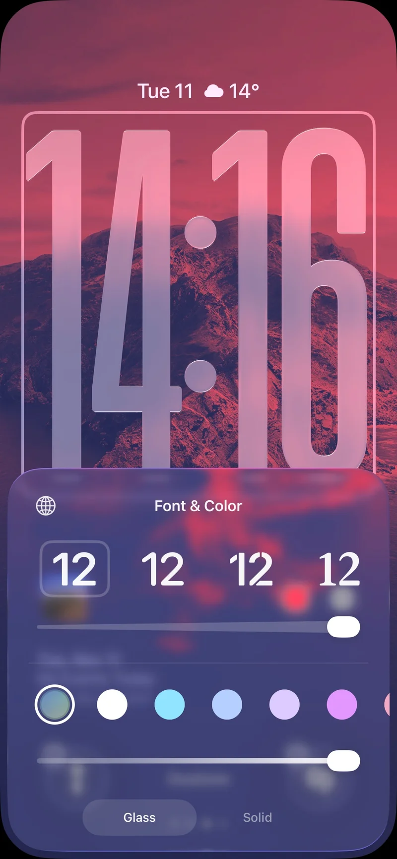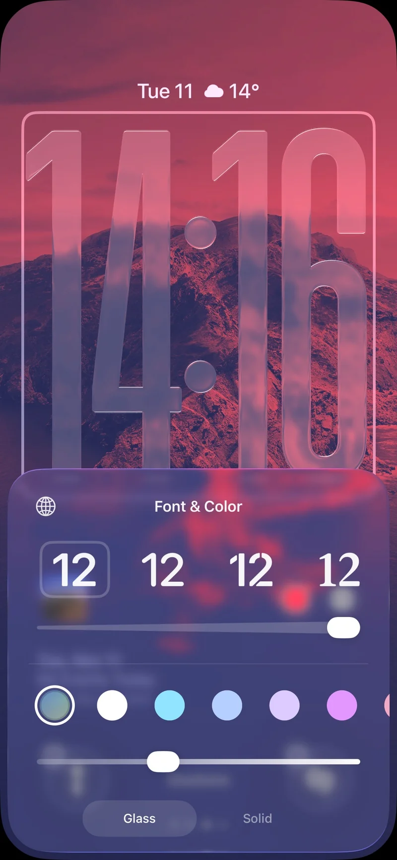 Лучше всего этот эффект смотрится с монохромными цветами, потому что слишком яркие оттенки просто не дают полупрозрачному стеклу раскрыться. Конечно, если вам вообще не нравится дизайн Liquid Glass, возможность оставить обычные сплошные часы никуда не делась.