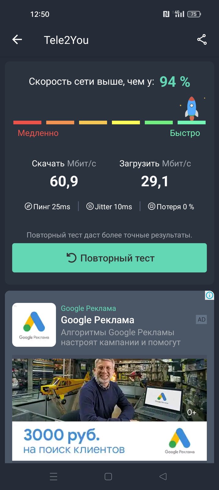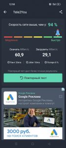 Используемый модуль связи обеспечивает существенно более лучшее качество передачи голоса, по сравнению, к примеру, с Xiaomi Poco F1. Пиковое значение скорости передачи данных, которое мы замерили, составило 60 Мбит на прием и 29 Мбит на передачу. Средняя же скорость передачи мобильных данных в сети Tele2 Москва и МО обычно не выходила за пределы значений 8 Мбит на прием и 2 Мбит на передачу.