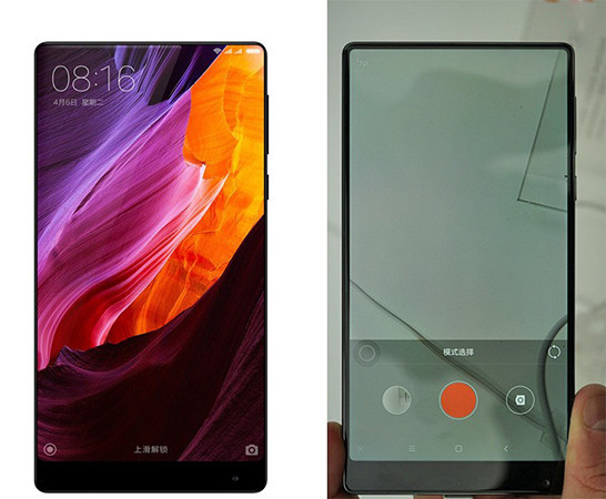 Одна из наших любимых картинок: слева один из первых официальных рендеров Xiaomi Mi Mix, а справа реальное фото смартфона. Сравните толщину рамок