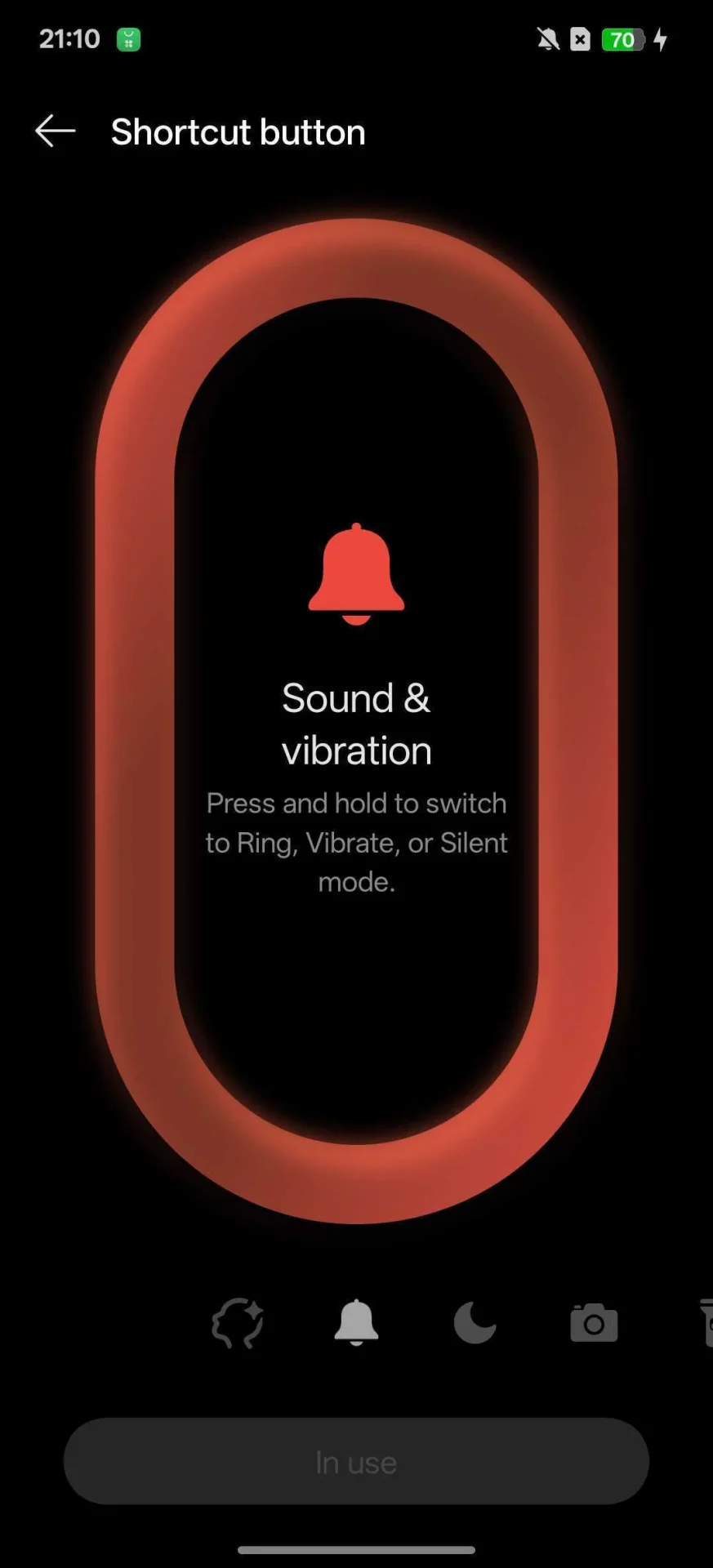 Да, вы можете настроить эту кнопку быстрого доступа, и изменение режимов вибрации является одной из доступных функций. Но эти режимы меняются только последовательно, поэтому вы не можете одним нажатием кнопки перейти из режима вибрации в режим полной тишины. Вам нужно долго удерживать эту новую кнопку и считать вибрации, чтобы понять, какой режим вы только что включили. Это совершенно неестественно и неинтуитивно по сравнению со стандартным аппаратным переключателем режимов вибрации.