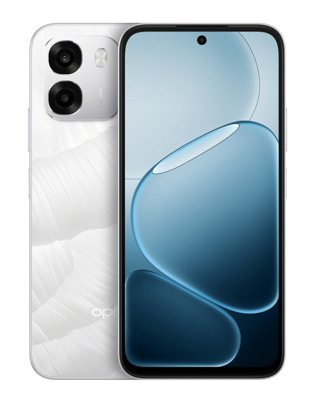 Oppo A6i+ в цветах «Ледниковый белый» и «Каштановый коричневый»