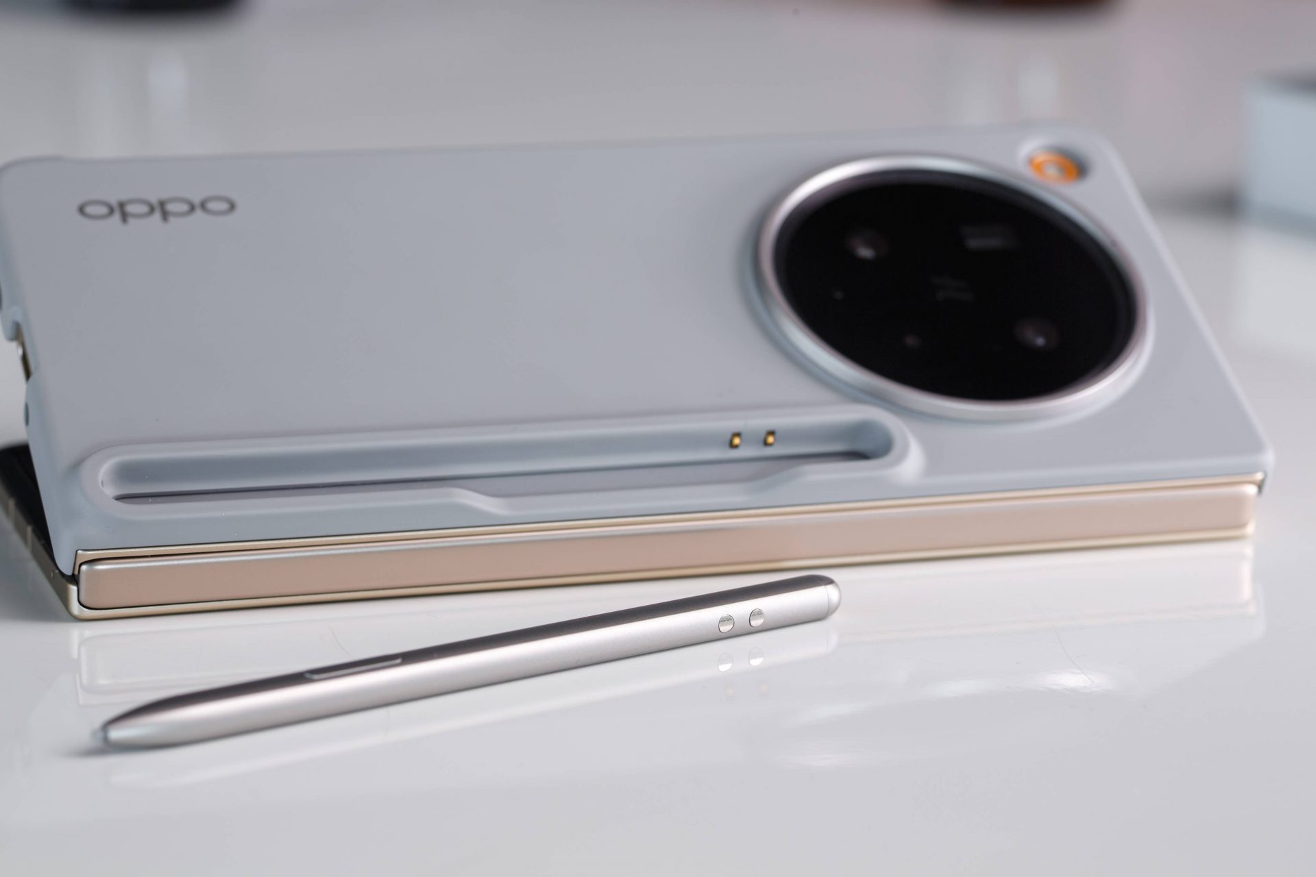 Для работы с устройством можно докупить стилус Oppo AI Pen. Он заряжается прямо на задней части чехла и полноценно работает с обоими экранами смартфона. Как следует из названия, перо оснащено рядом интеллектуальных функций.
