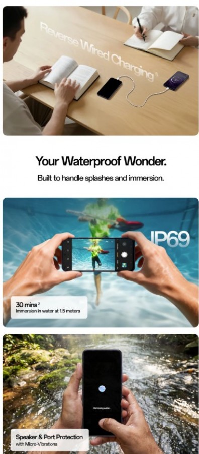 Аппарат получил дисплей с частотой обновления 120 Гц и пиковой яркостью 1125 нит, что указывает на использование ЖК-матрицы. В основе смартфона лежит процессор MediaTek Dimensity 6300, который работает в паре с 8 гигабайтами оперативной памяти и накопителем на 256 гигабайт. Разрешение основной камеры составляет 50 мегапикселей.