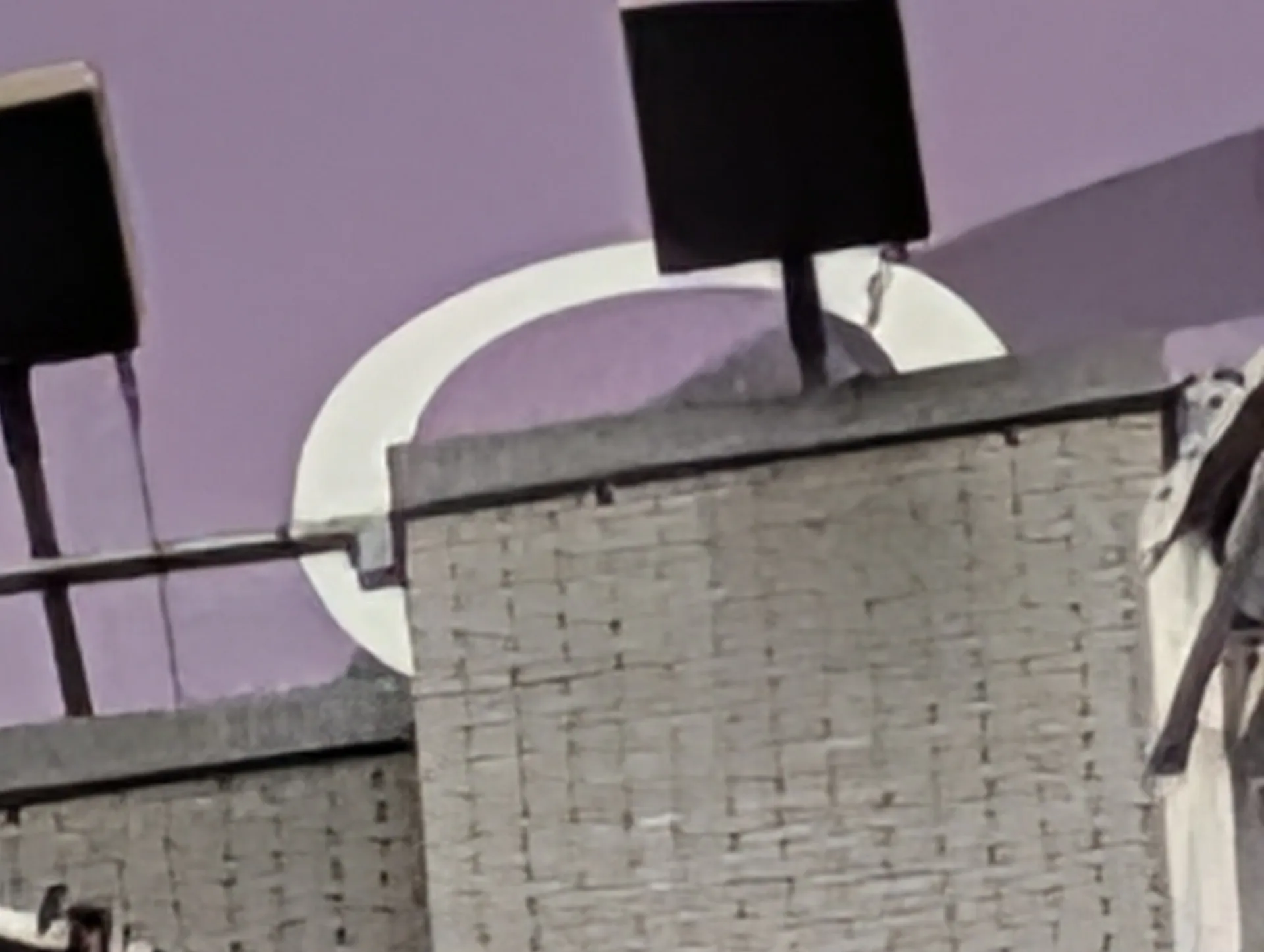 Пример 100-кратного зума с камеры Pixel 10 Pro: оригинал (слева) и отредактированный ИИ (справа)