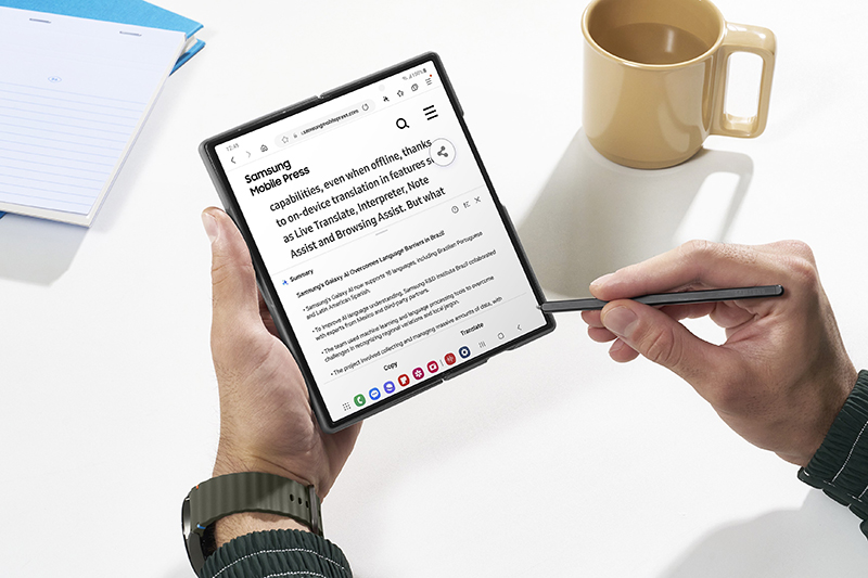 Работает Galaxy Z Fold6 под управлением Android 14 с оболочкой OneUI 6.1.1 и набором опций Galaxi AI, использующих искусственный интеллект.