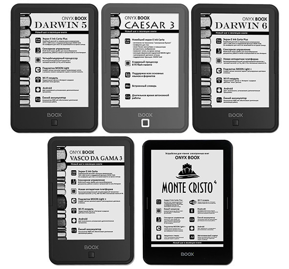 Ридеры Onyx Boox Caesar 3, Vasco da Gama 3, Darwin 5, Darwin 6 и Monte Cristo 4