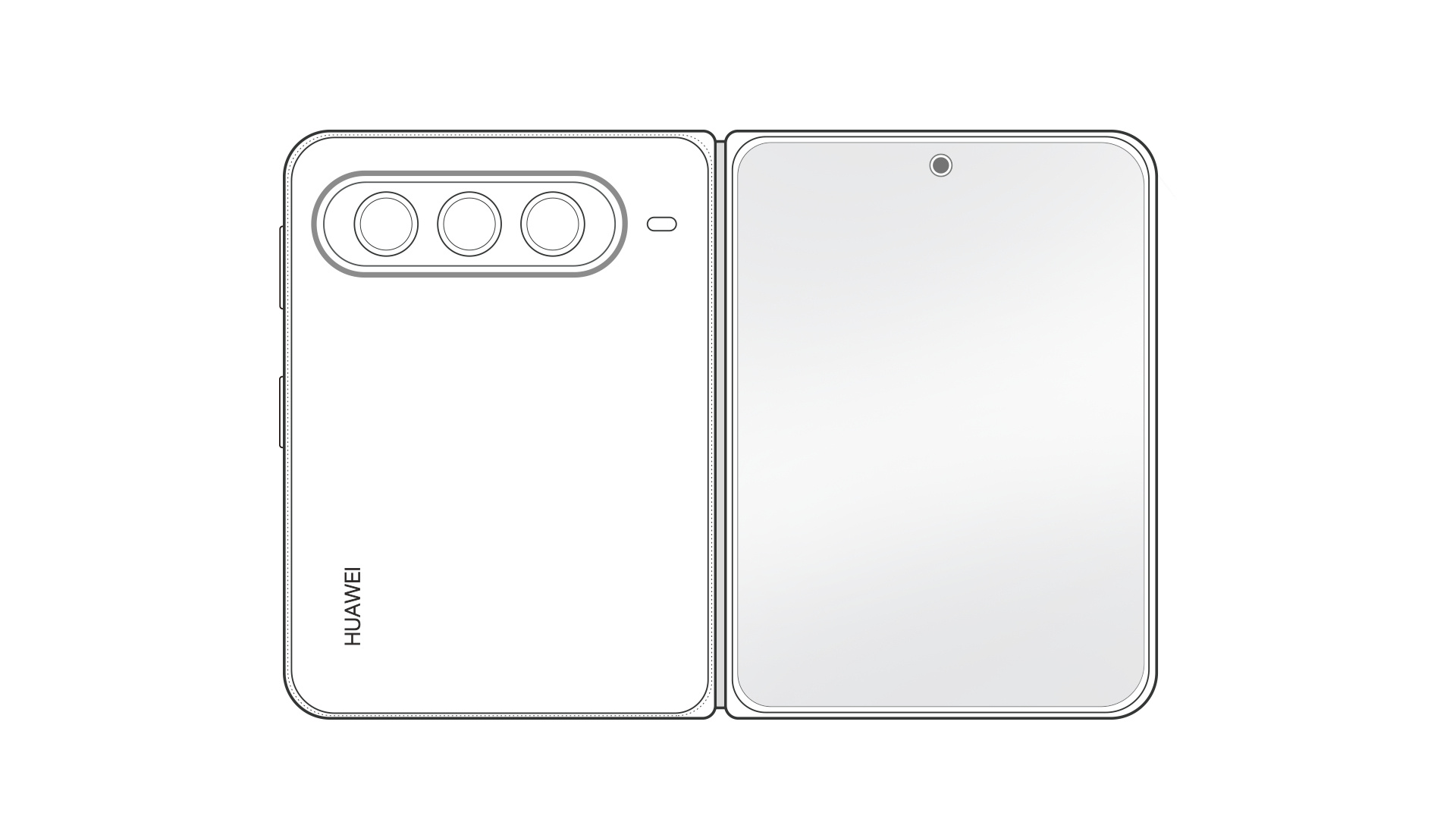 Свежие сводки называют этот аппарат Huawei Pura Wide Fold, и это вот прям массивный монстр. Размер его внутреннего полотна достигает 7,5 дюйма. Такой показатель значительно обходит 6,3 дюйма модели Pura X. При этом он лишь самую малость уступает 7,8 дюймам, которые приписывают складному iPhone. Передняя панель получила стандартный вырез под фронталку. Еще один объектив спрятали в углу главного дисплея точно так же, как это сделано в iPhone Ultra. Очевидно, тут кроется разница в подходе. В обычном Pura X глазок стоит по центру края, так как тот аппарат шикарно заточен под вертикальный хват.
