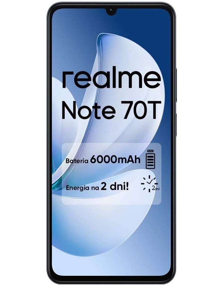 Realme Note 70T работает на базе процессора Unisoc T7250, обновлённой версии T615. Это 12-нм чип с 2 ядрами Cortex-A75 (1,8 ГГц) и 6 ядрами Cortex-A55 (1,6 ГГц) и графическим процессором Mali-G57 MP1. Он также оснащён модемом 4G. Устройство работает на базе Android 15 с пользовательским интерфейсом Realme UI 5.0.