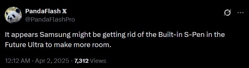Samsung может отказаться от встроенного хранилища для S Pen в Galaxy S26 Ultra.