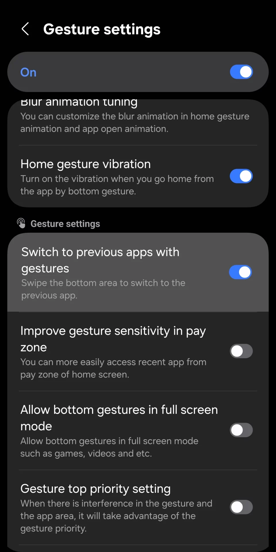 - Жесты: если вы постоянно по ошибке пролистываете предыдущее приложение при прокрутке, вы можете полностью отключить жест смахивания вниз.