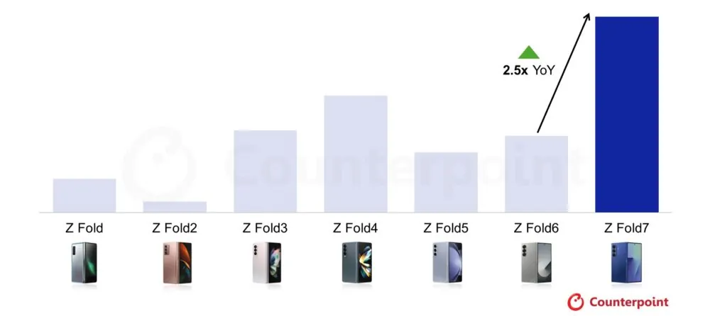 Samsung на коне: Galaxy Z Fold 7 устанавливает рекорды продаж среди складных смартфонов!