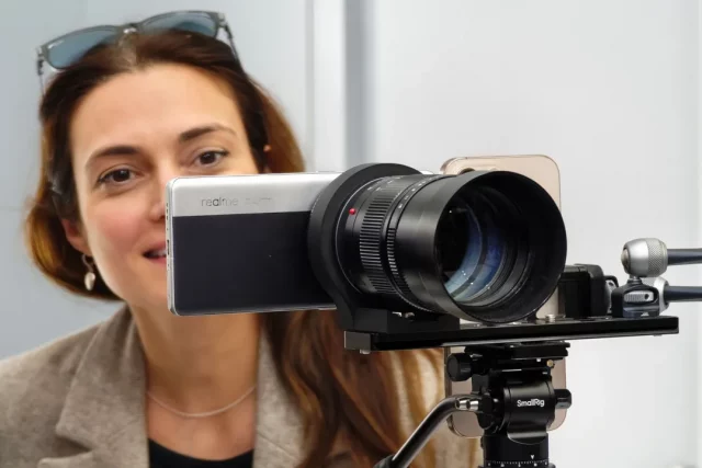«Перебор» — это не то слово, которым можно описать диковинную концепцию камерофона Realme. Вместо того, чтобы идти на компромисс в отношении оптики объектива, чтобы он помещался в ладони, Realme оставляет свой 5-сантиметровый основной сенсор открытым; вы устанавливаете переходную пластину, а затем вместо неё прикрепляете полноценный объектив системной камеры.