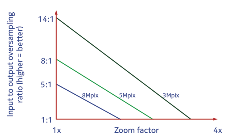 Следующее преимущество использования оверсэмплинга – возможность реализации цифрового увеличения без внесения в фотографию интерполяционных искажений. Как мы уже упоминали, использование классической зум-оптики увеличивает габаритные размеры объектива. Поэтому для мобильных устройств традиционным является поддержка лишь цифрового увеличения. Но, при классической схеме цифрового увеличения, используется меньший фрагмент сенсора камеры, а нужное разрешение снимков достигается за счет интерполяции. Результат – ухудшение качества и рост шумов на снимке. Решение от Nokia более изящное – при использовании цифрового увеличения просто снижается количество точек, усредняемых при оверсэмплинге. При максимальном увеличении оверсэмплинг не используется вообще, а из получаемого с сенсора камеры изображения просто вырезается нужный фрагмент соответствующего разрешения.