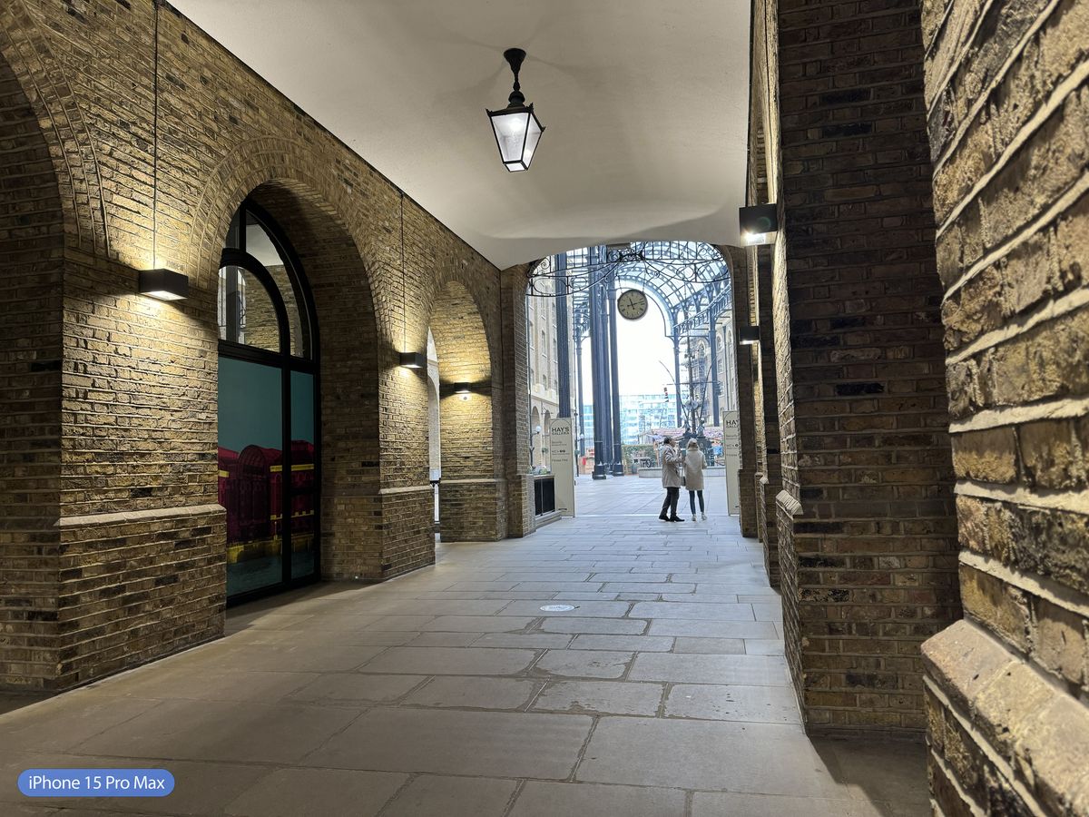 iPhone занял второе место благодаря прекрасной передаче цветов и контрастности, а также способности сохранить яркие элементы на заднем плане сцены. Однако его результаты не так впечатляющи, как у S24 Ultra, который смог точно воспроизвести всю сцену, сохраняя все детали за пределами арки и освещенную кирпичную кладку на переднем плане.