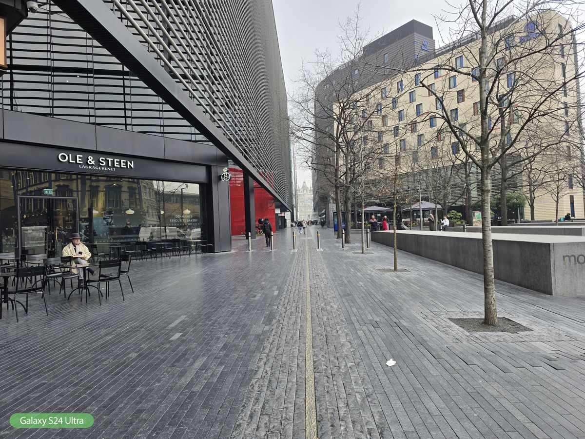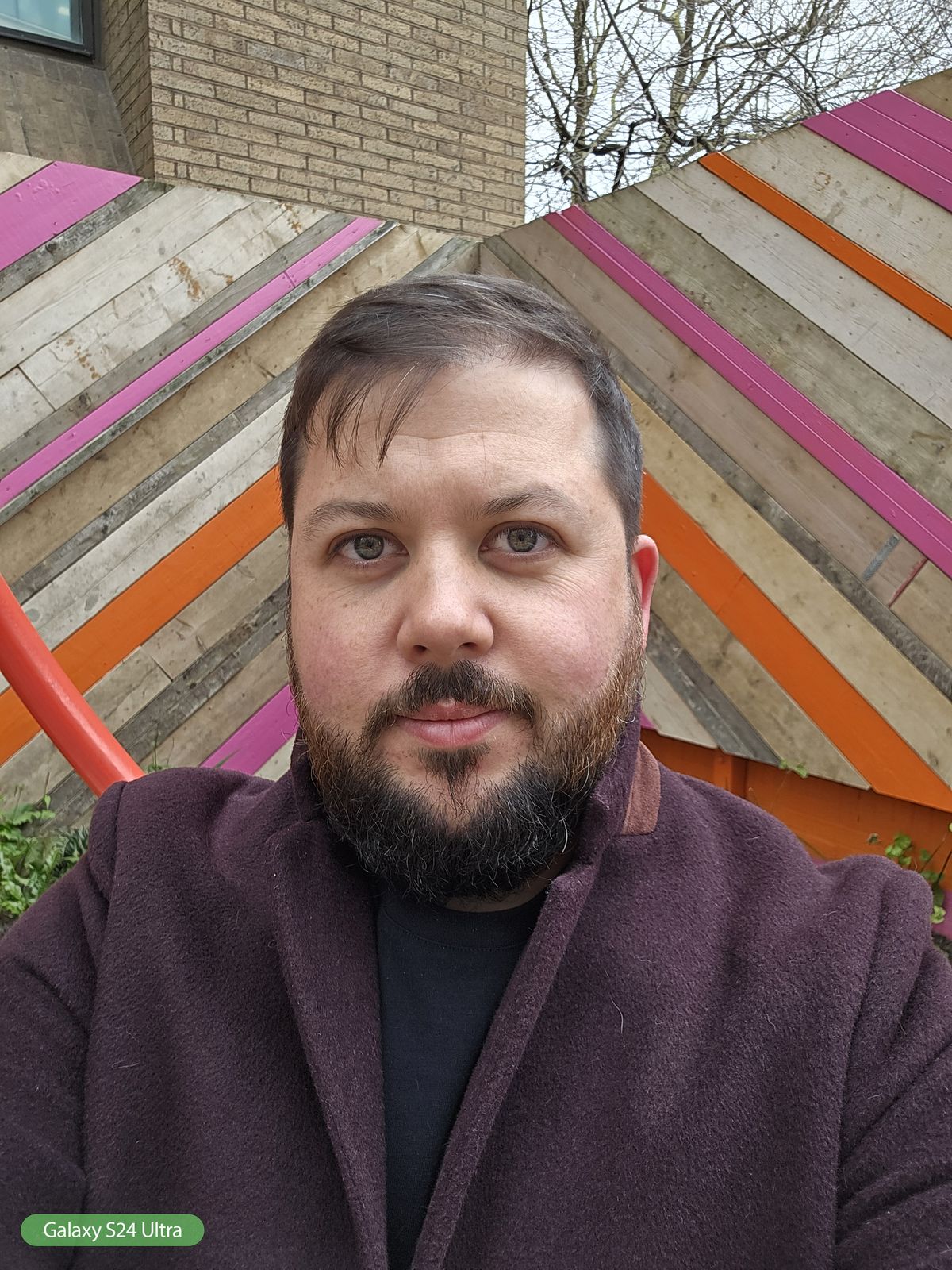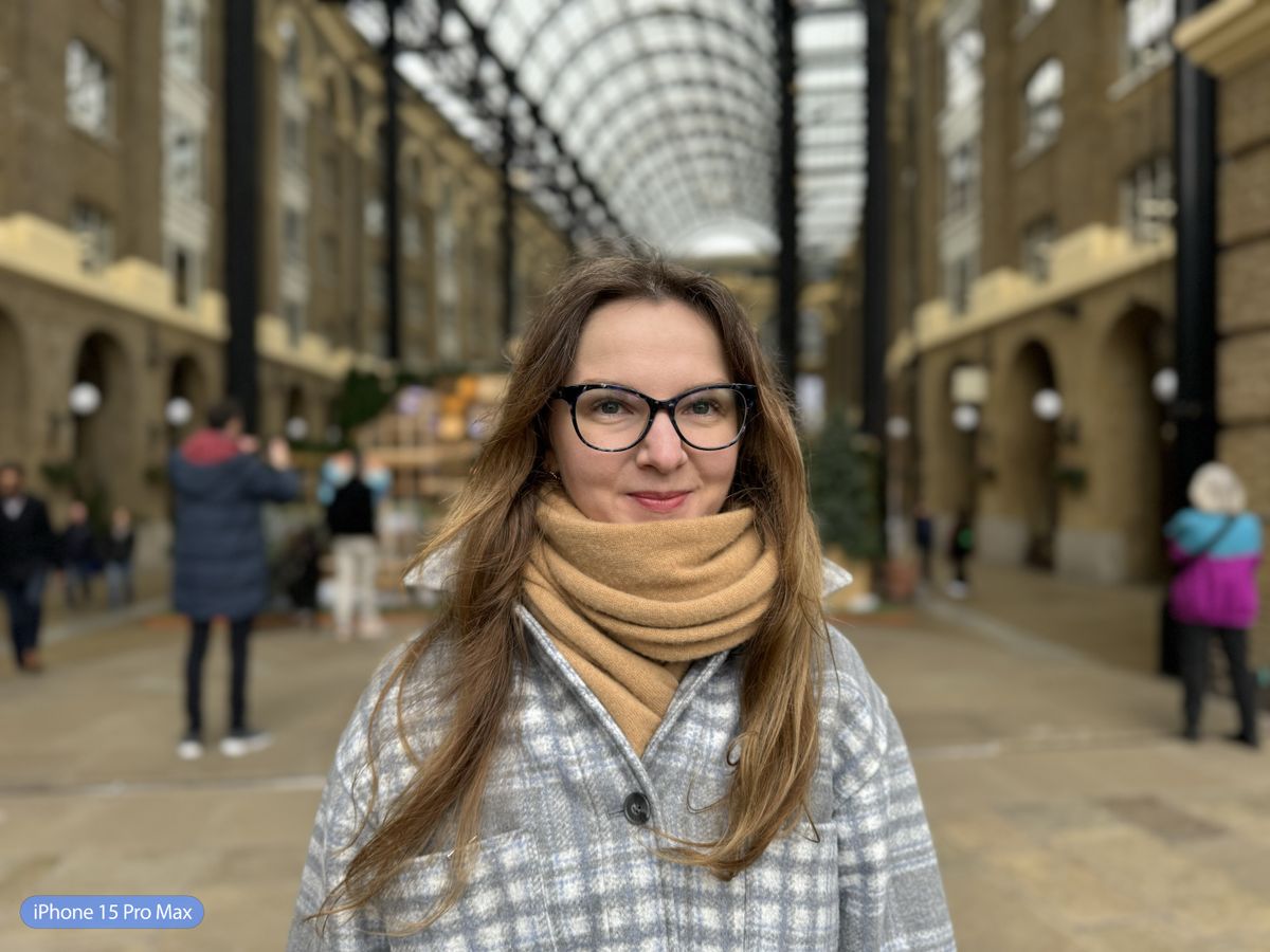 В отличие от Pixel, камера S24 Ultra также перекрасила всю сцену в другой цвет с легким зеленым оттенком. Однако она хорошо передала цвета и контрастность девушки. Благодаря крупному сенсору и объективу телефона, снимок стал чуть шире и с меньшей глубиной, что добавило естественной мягкости фону, но конечный результат оказался немного размытым.